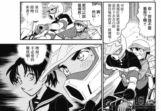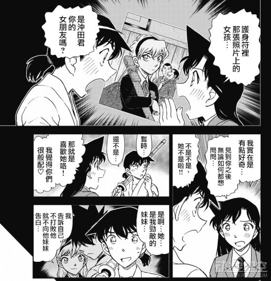 小兰也看到了其中是一个女孩子的照片,小兰向冲田询问这个是不是他的女朋友,冲田承认说这个是他劲敌的妹妹,打算打败劲敌之后向她告白。