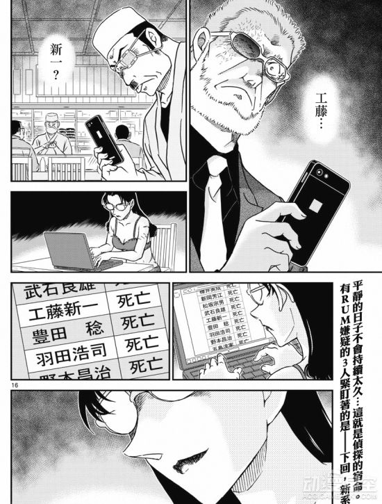 工藤新一破获天狗杀人案的事情很快在网络上传开,身份一直都不明确的三个人,黑田兵卫、若狭留美老师以及那个厨子都注意到了这则消息,而在若狭留美老师电脑上还出现了黑衣组织的死亡名单。这三人都是有可能是RUM的嫌疑,在接下的新篇中,可能就会揭晓他们的真实身份。