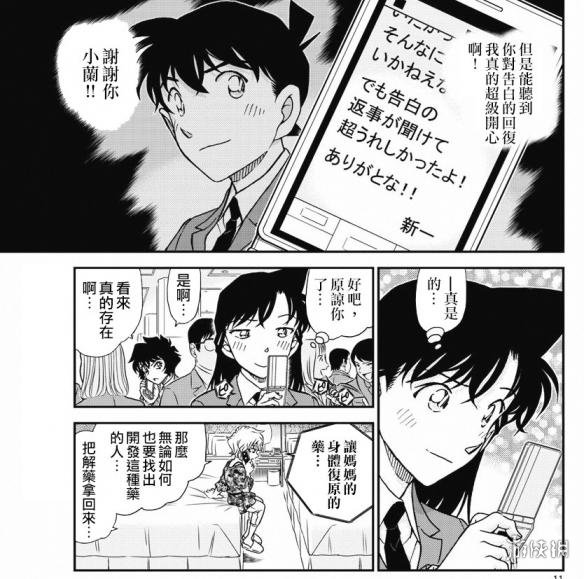 这时候新一给小兰发了短信,表示能够收到告白回复十分开心。而世良正在给她妈妈打电话,说一定要找到开发这种药的人,并且拿到解药,四处躲藏的日子。而服部平次在看到工藤和小兰的事情之后,也开始考虑如何向和叶告白。