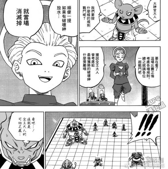 《龙珠:超》漫画第28话汉化版已发布。和动画剧情完全不同,漫画里的全览大会派出十二个宇宙的破坏神参战,其中比鲁斯更是不幸地被当成了集火的靶子。