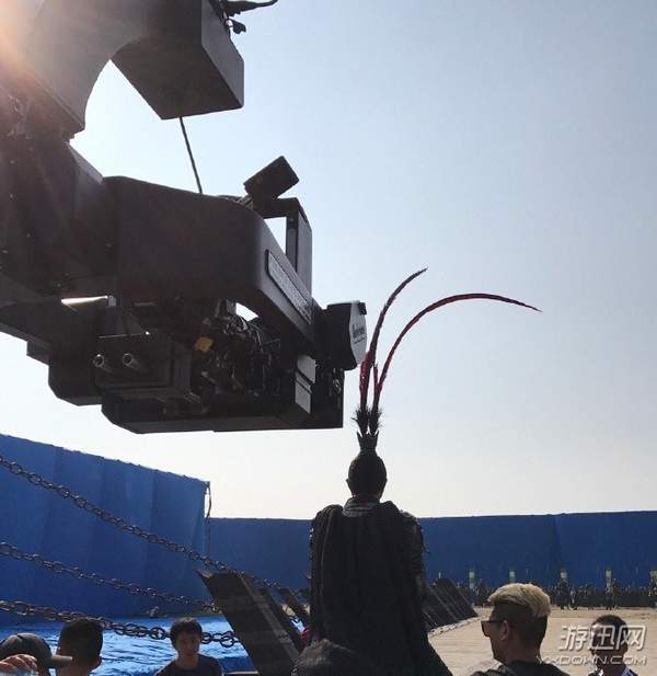 从片场照来看似乎是在拍摄骑马的戏份,不过从这角度并不能看清赤兔马的样子。导演周顯揚发微博称赞“最帅的战神 - 吕布登场。气场势不可挡!”