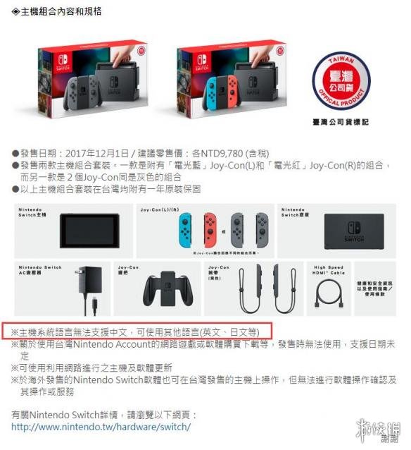 值得一提的是,Switch台版仍然不支持中文,目前可用的语言是英文和日语。
