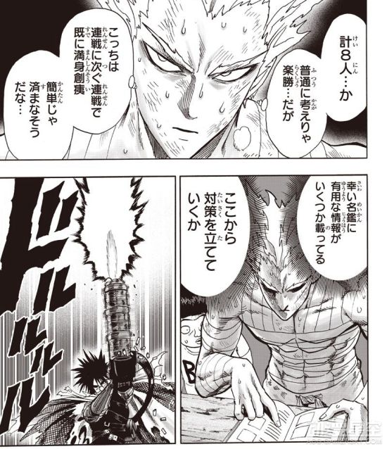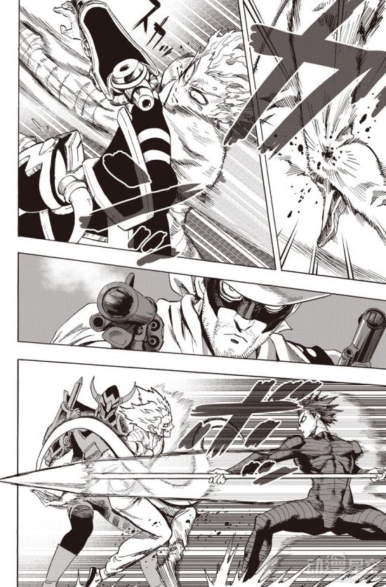 《一拳超人》漫画122话的先行图公开,在本集里饿狼被英雄们围殴,貌似他是要保护那个孩子不被英雄们伤到?不管怎么说,感觉这次饿狼是相当的凄惨啊,但是感觉很悲壮。话说这一集几乎全是战斗场面,各个英雄们还互相配合围攻饿狼,动作画面分镜也是相当的给力,看着真是非常的爽。