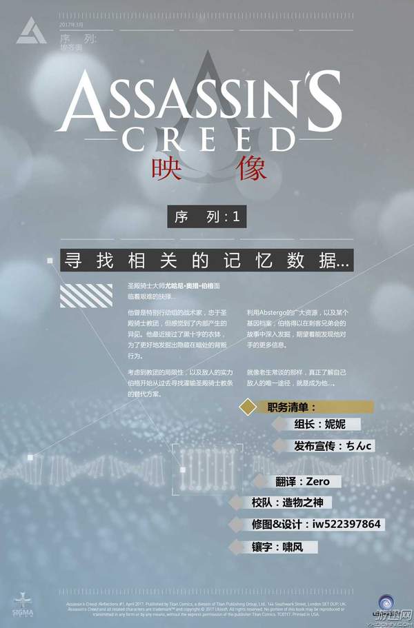 《刺客信条映像》是由育碧、Titan Comics打造的全新的《刺客信条》系列漫画,在该部漫画中,《刺客信条1》主角阿泰尔、《刺客信条2》三部曲主角艾吉奥、《刺客信条3》康纳、《刺客信条4》爱德华这四代主角齐聚,新剧情中将揭开诸多未知的秘密。本次发布《刺客信条映像》系列官方漫画的序列1:艾吉奥篇,后续章节随后将陆续发布,敬请期待!