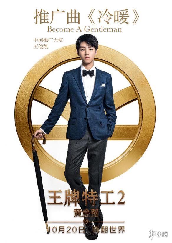 此次由王俊凯为电影献唱的推广曲《冷暖》上线,并在9月24日王俊凯全网直播的成人礼上首度开唱,同时在线人数超过110万人。此次电影推广曲以其动听走心的音乐风格与具有坚韧力量的歌词,配合电影中表达在艾格西特工基地被毁后,经历迷茫、愤怒、信任、勇敢等情绪的画面,用音乐的方式另类诠释电影的“绅士精神”与深层情感。歌曲MV中刚满18岁少年初长成的王俊凯声线动人,昔日天真少年褪去青涩懵懂,尽显深情沉稳。伴随推广曲MV同时曝光的还有歌曲的定制海报,王俊凯身着王牌特工同款西装,手拿绅士长柄伞站在电影金色标志前,“少年特工”实力助阵电影宣传,为好电影“青春发声”,注入新鲜力量。