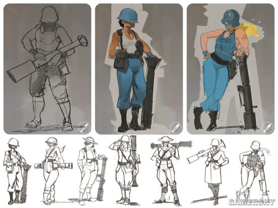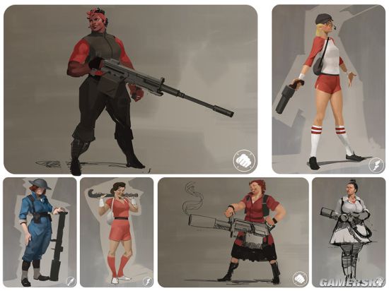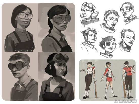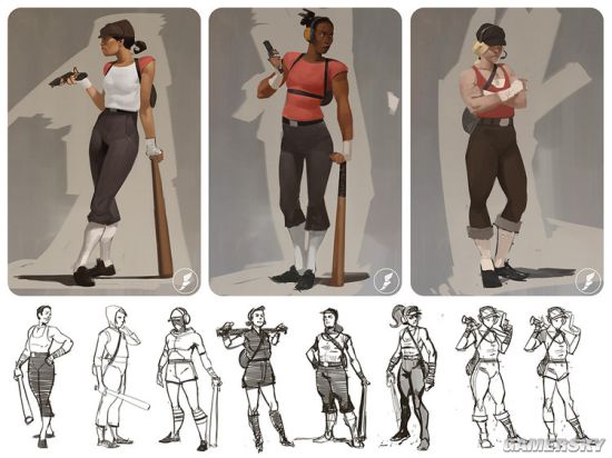 在《军团要塞2》中,玩家操控的角色大多数都为男性角色。而最近一些来自于V社美工Drew Wolf个人网站的概念图似乎是曝光了V社要为《军团要塞2》加入女性角色的计划。