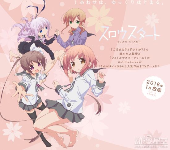 改编自四格漫画的《Slow Start》将于2018年1月开播,目前官方公布了本作的宣传PV和角色介绍视频。在四位可爱少女的陪伴下,轻松治愈的日常生活即将开幕。