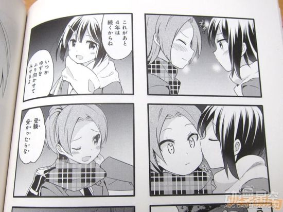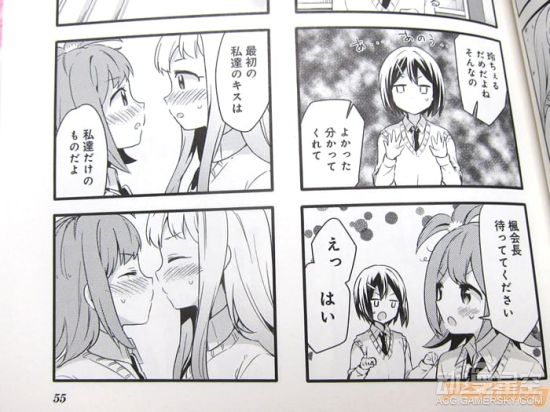 通过频繁的接吻,两位女主角春香与优的关系日益加深,她们彼此之间也萌生出了共度一生的决定。除此之外,其他几对少女——雫与琴音、枫与柚子,以及美月与理奈之间的关系也进一步升温,她们的结局同样非常精彩。在漫画彩页的渲染下,甜美可爱的少女们与樱花飘舞的毕业季节相得益彰,令人沉醉其中。