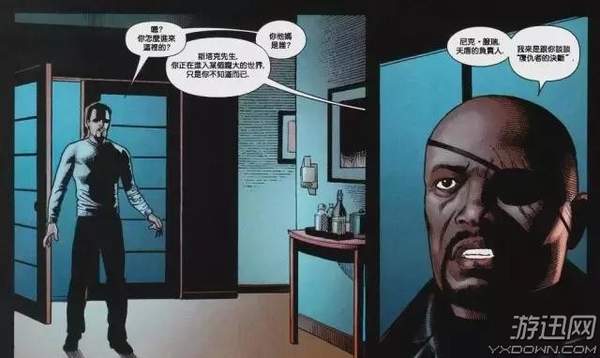 在漫画结尾,也是一模一样的场景。对比之下,总感觉电影的尼克弗瑞更酷一些。