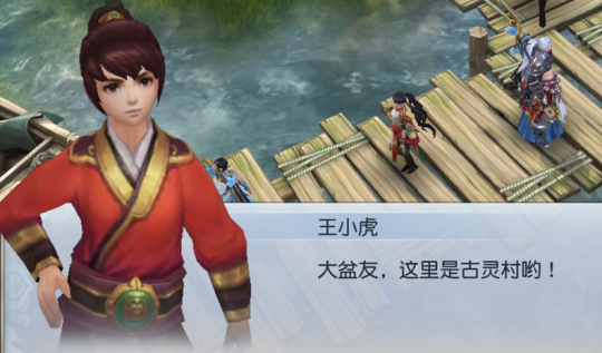 打完开场看起来自己很强,但实际上看完了又得从1级开始的BOSS战斗以后,我来到了一个湖畔的小山庄,结果遇到第一个NPC就是王小虎……