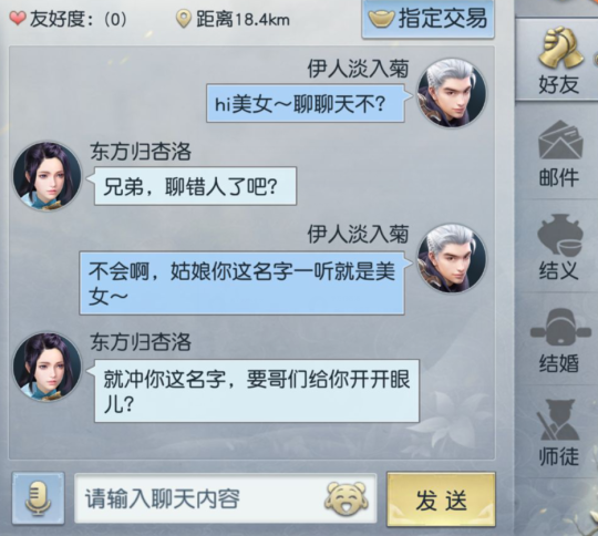 看来在游戏中取名字十分重要,没有一个好名字,别人连想和你聊天的冲动都没有。