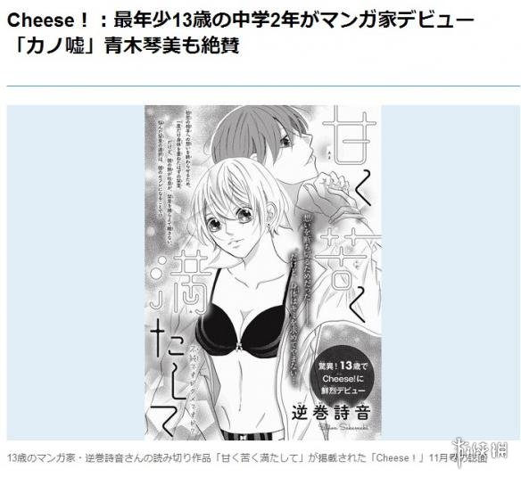 去年日本一位年仅14岁的小萝莉因获得了漫画业界权威的新人奖,并将作为商业漫画家出道而名噪一时。今年日本一位13岁初二学生逆巻诗音同样以职业漫画家的身份出道,刷新日本职业漫画家的年龄下限,在小学馆的《Cheer》上刊载漫画作品《甘く苦く満たして》。