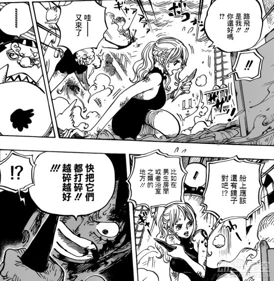 镜世界里,气息奄奄的路飞倒在地上,一旁的卡塔库栗则指示布蕾利用镜子能力对桑尼号实施攻击。见势不妙,路飞迅速出手想要击碎镜子,然而卡二哥却又一次将他踢飞。