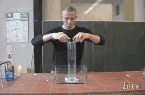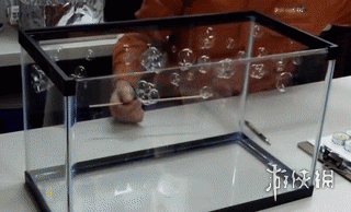 玻璃缸中的并不是空气,而是六氟化硫气体(SF6)。这种气体无色透明,看起来和空气差不多,但是密度是空气的5倍,所以泡泡就漂起来了,就像小船漂在水里一样!