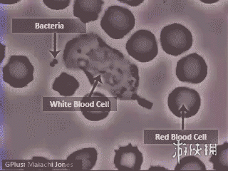 白细胞各种变形,各种挤缝隙。不过吃一定细菌癌细胞以后就会死亡。这就是为族群而死吧。