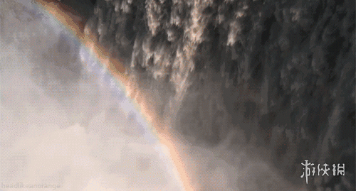 倾泻而下的瀑布溅出的水珠弥漫在天空,在阳光照射下形成道道彩虹,仿佛整个瀑布是用金子锻造成的,景象瑰丽无比。