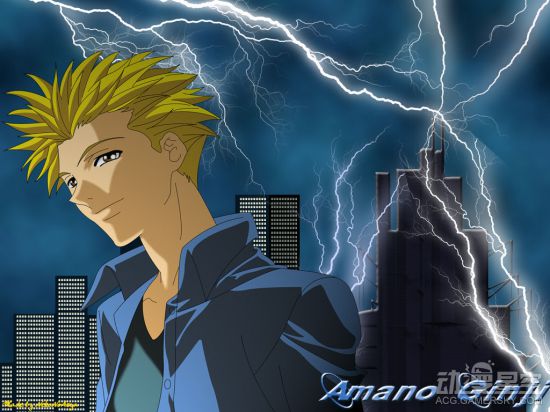 天野银次是在日本漫画中《闪灵二人组》登场的虚拟角色,由森久保祥太郎配音。男主角,是三代目夺还屋 GetBackers。自小被抛弃在无限城,组织了VOLTS,担任其领袖,控制著无限城的「下层区域(lower town)」。后离开无限城与美堂蛮组织夺还屋。自称爱的战士,像电鳗鱼一样自在发出在体内的电能,是其战斗的武器。