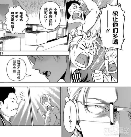 回到赛场,此时塔克米的时雨煮披萨已经烤制完毕。听到烤炉发出声响后,狂笑的睿山建议塔克米先让评委们喝一些水,借此冲淡洋蓟酸的影响,不过塔克米却认为自己“不这样做也能赢”,莫非他真的留有逆转绝杀的后招?