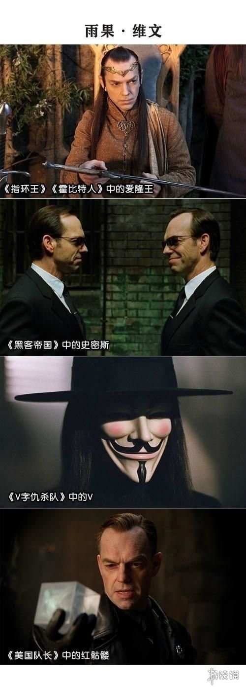 雨果·维文像是邪恶的缪斯。虽然片中的他极其邪恶、令人谈之色变,但在现实生活中,他是和蔼、幽默、有爱的人。雨果能够演绎戏剧独白以及慷慨激昂的演讲桥段,而且还能借助自己独到而精湛地发挥。