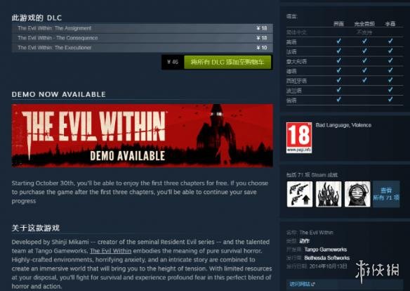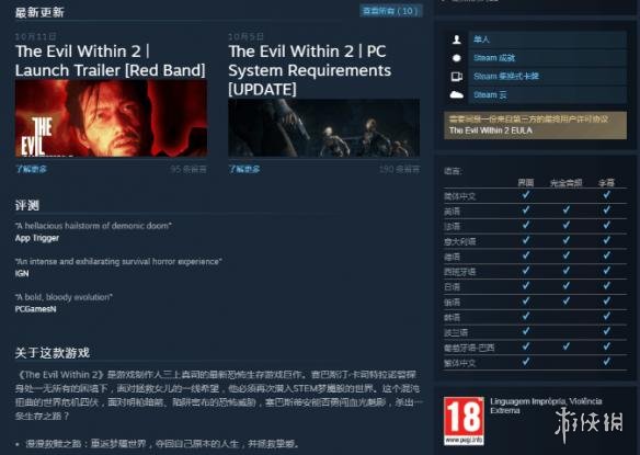 《The Evil Within》以及《The Evil Within2》的相关游戏评级截图: