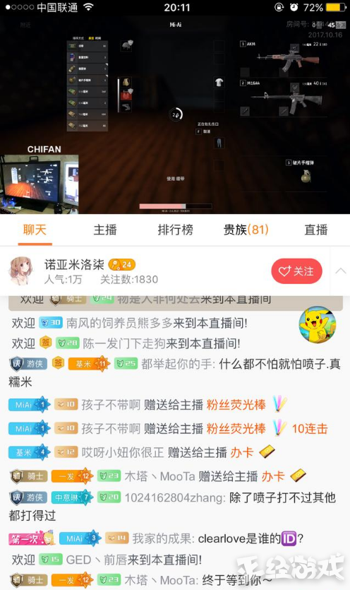 也有玩家想对其进行评论发弹幕,但发现他的直播间需要办卡才能说话,而且一旦有提到外挂糯米等关键词,就会立刻被封。而在贡献榜前几名的房管也与在直播间和玩家进行对骂。