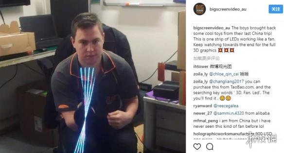 该博主表示:“这位国外小哥在上次的中国之行中,带回来一样超酷的玩具,这式一款像风扇一样转动的LED灯带。”