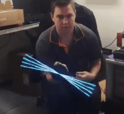是不是酷毙了?长这么大才知道,原来电风扇也能如此狂拽炫酷吊炸天。从画面中可以看到,这个小玩意能像电风扇一样转动,同时展示出各种变幻莫测的3D全息影像特效。