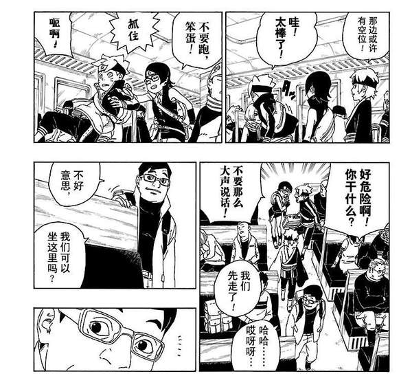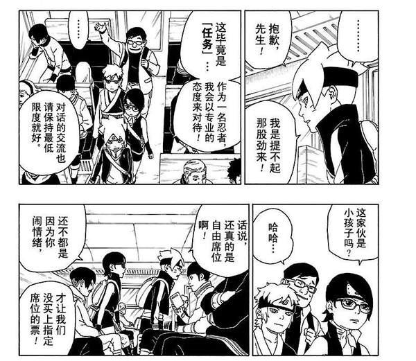 莎拉娜和巳月找到博人,莎拉娜告诉博人这个任务她一定要接,而巳月也是用自己方法说动博人一起参加任务。感觉巳月在三人组中能很好的联动其他两个人的,最后博人接受了任务,和大家一起登上了去往研究所的火车,在火车上方助遇到了熟人。