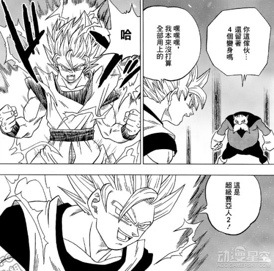 尽管从超二变成超三,但悟空的攻击仍未对托破构成威胁,对方甚至直接飞起一脚将悟空踢开。随后悟空变身超级赛亚人之神,总算能与托破抗衡了。