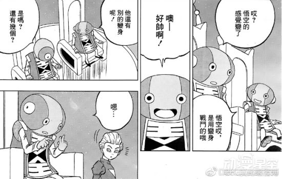 悟空的超级赛亚人变身令未来全王大开眼界。经过大神官的询问,目前悟空共有五种变身状态,于是为了让全王更加开心,维斯拜托悟空把所有变身都展现一遍。