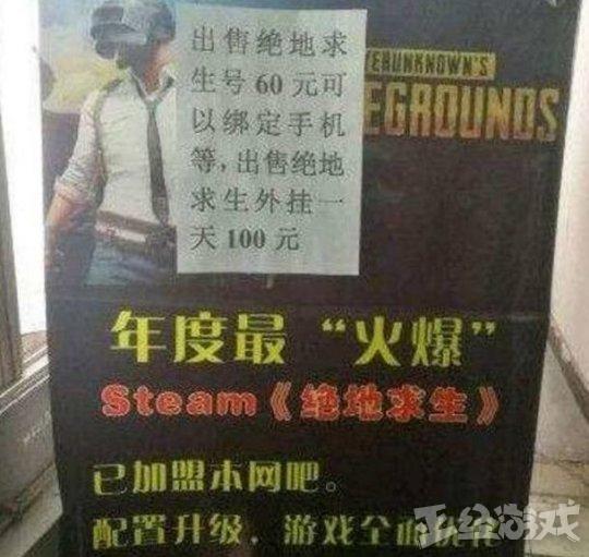 有网友曝光了自己家乡网吧售卖外挂的海报图,这家网吧不仅仅以一天100元的价格出售外挂给玩家使用,而且为了赚钱,这家网吧甚至帮助玩家省去了注册账号的麻烦,直接公开出售绝地求生的账号,价格标注60元,安全性着实让人担忧。