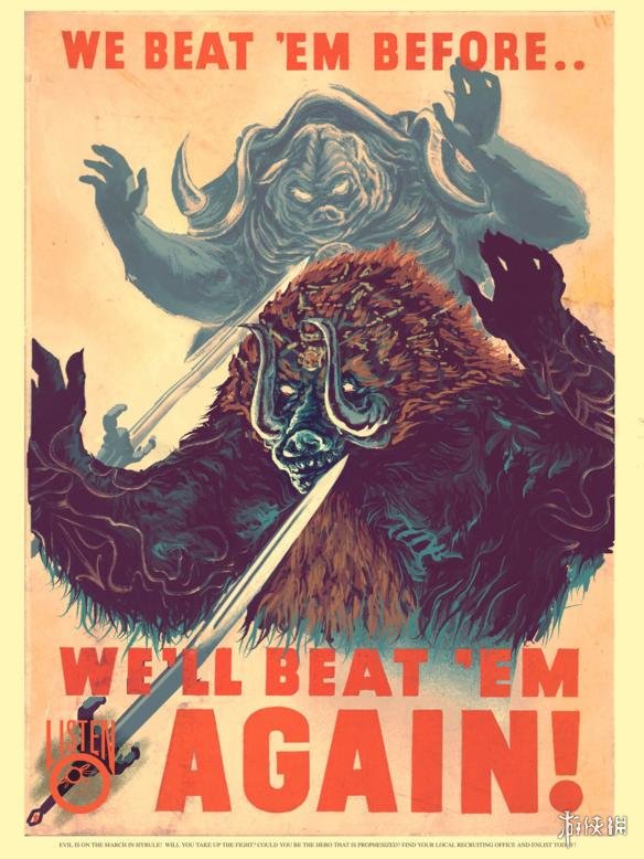 近日,一位名为Fernando Reza的原画师为我们带来了精彩作品,这些作品非常独特,画风都带有二战时期的宣传海报风,虽然作品的内容多与《塞尔达传说》有关,不过这样的搭配看上去并不违和。