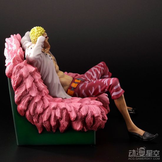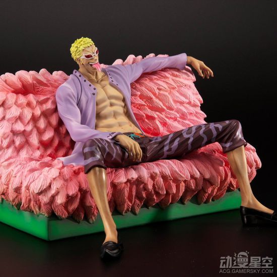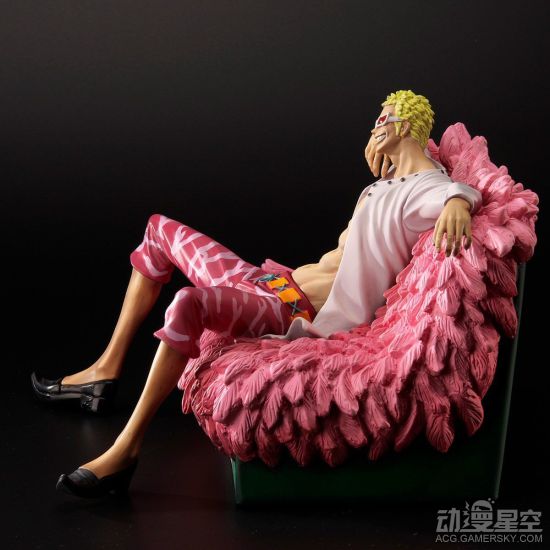 这款手办可以说完美的展现了多弗朗明哥的形象,风骚的粉红色羽毛大衣,金色的头发,极具个性的面部表情。虽然有些细节做得不太完美,不过整体效果还是不错了。这款万代限定款手办一共有2种造型(面部表情和姿势不同),高为20cm,每款售价为23760日元(约为人民币1386元)。2017年10月23日起接受预约,2018年2月发售。