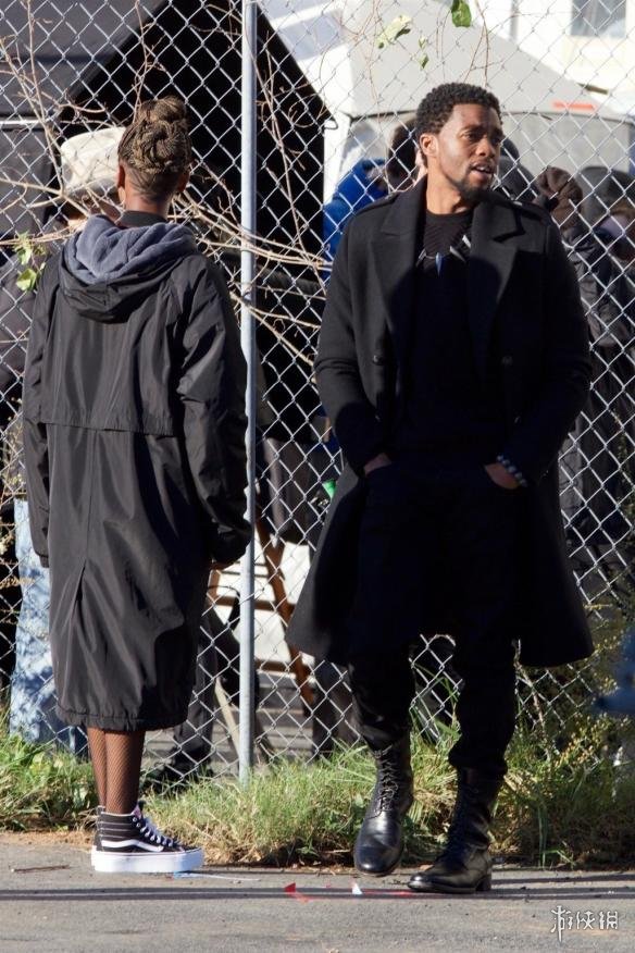 比起昨日的片场照,黑豹今日的照片质量明显高清了不止一点点,穿着黑色风衣的特查拉自带国王气场,愣是把片场走成了T台。