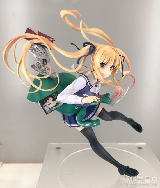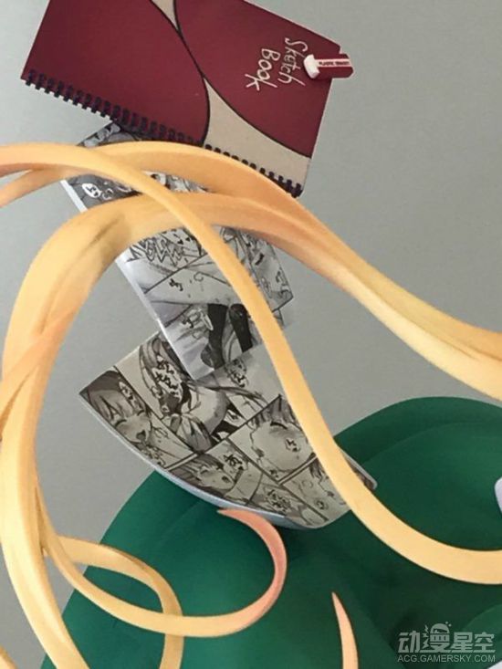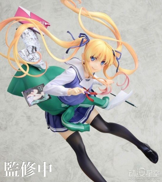 这只英梨梨手办还原了她在BD封面上的姿势,飘逸的金发、素描本、文具和已经画好的手稿四散在空中,呈现出跃动的感觉。值得关注的是,这款手办在细节方面的涂装非常细致,甚至连纸页上的黑白漫画都描绘得淋漓尽致,足以可见上色者的用心。
