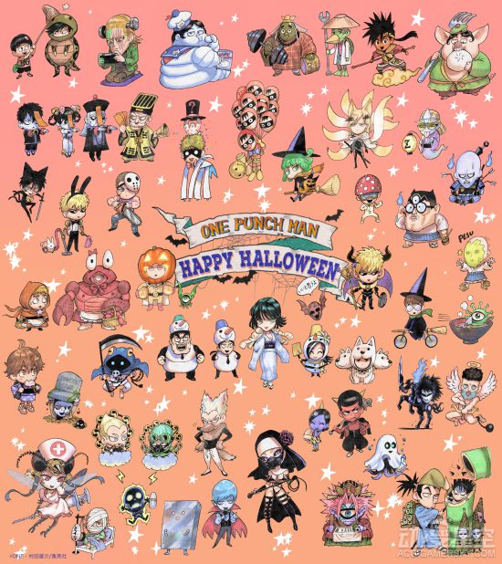 现在正值万圣节期间,《一拳超人》重置版漫画的作者村田雄介老师也是专门推出了《一拳超人》的万圣节主题壁纸,在漫画中出现的角色几乎都有出场,而且都是Q版的形象,相当的可爱。来看看都有哪些角色登场吧,你能都认出来吗?友情提示:点击图片有无水印大图~