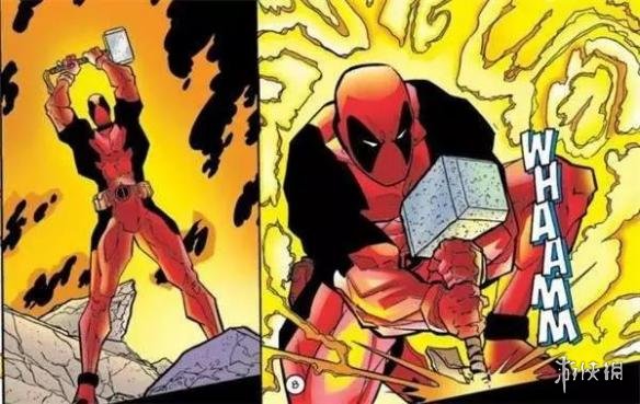 这场死侍的杀戮盛宴中有几段非常恐怖的画面,其中之一就是死侍用蚁人的皮姆粒子将雷神之锤放大,结果雷神无法承受巨型锤的冲击而被压死了。
