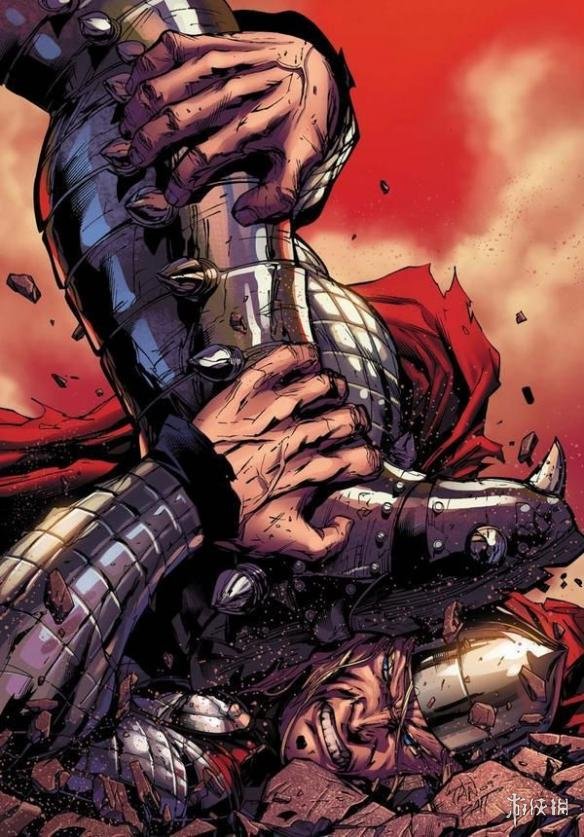 在漫画《复仇者联盟大战X战警》这部漫画中因为绯红女巫的一句话将变种人逼入了绝境,X战警因此和复仇者联盟爆发了一场恶战。战斗中为了击毁凤凰之力,雷神尽全力的将锤子丢向凤凰,但受到攻击的凤凰很快恢复并将雷神打倒在地。