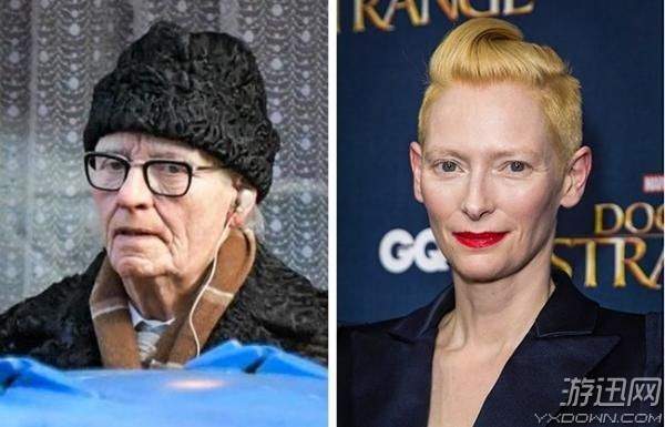 蒂尔达·斯文顿,在《布达佩斯大饭店》中扮演84岁老妇,戏中她满脸皱纹、老人斑,还有“火鸡脖子”,让观众直呼认不出。在《奇异博士》中的光头形象也让人大呼敬业。