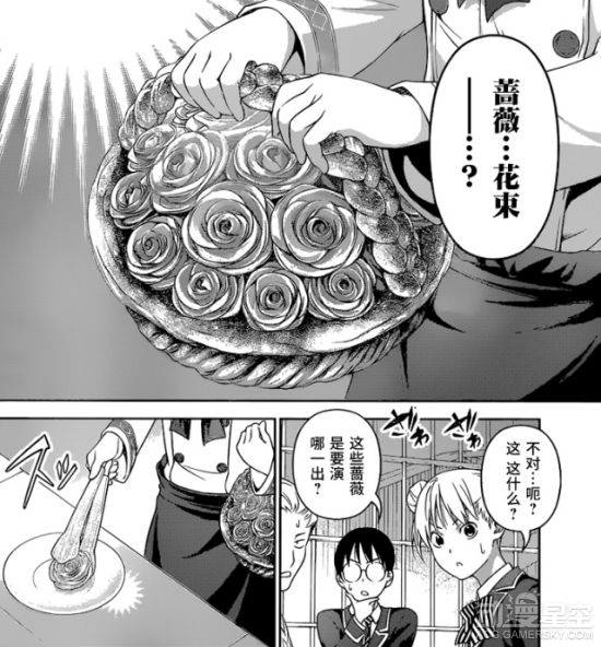 另一边,在见识到小桃学姐的可怕之处后,小惠也倾尽全力准备端出自己的料理。通过与创真和塔克米的团队合作,以及从四宫小次郎那里学习到的新技巧,此时小惠再次将现实与漫画结合起来,“四宫教练”的画风大幅变化。