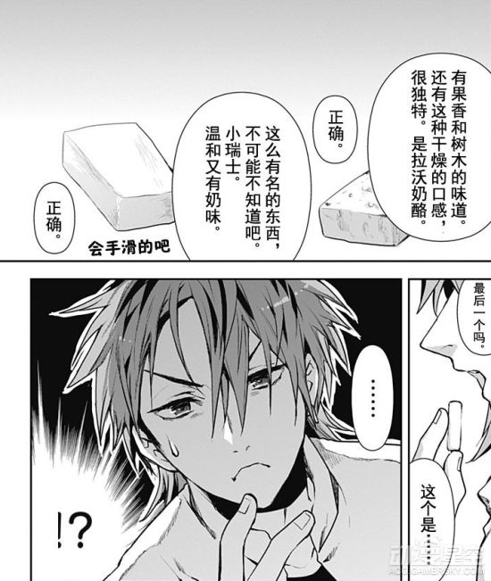 第29话里,小次郎与助手阿尔贝尔来到郊外庄园寻找满意的奶酪,没想到却看到一位老爷子与奶牛之间不可告人的秘密。恢复正常后,老爷子让小次郎一一分辨众多奶酪的名称,借此考验是否值得将自己家产的奶酪托付给他。