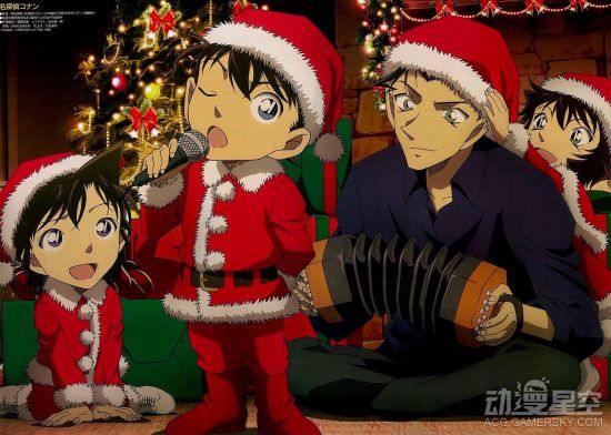 日本动画杂志月刊《Animedia》公布12月《名侦探柯南》圣诞版权绘,新一、小兰、世良以及赤井私人圣诞装登场。