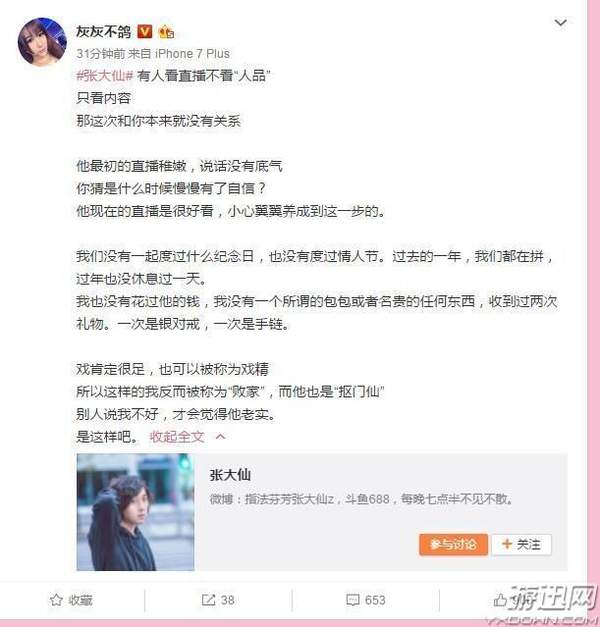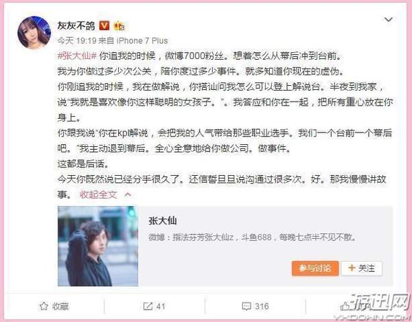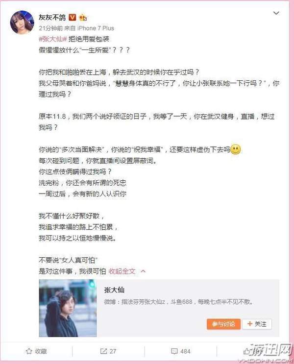 喜欢《王者荣耀》的玩家,应该对主播张大仙都有所了解,技术高、人品好、还有一个漂亮的女朋友。而且两人的感情非常好,可以说是很多人都羡慕的一对。但近日,张大仙发布微博表示自己已经和灰灰分手,分手过程中两人进行过多次面谈沟通,自己也不会回避什么!