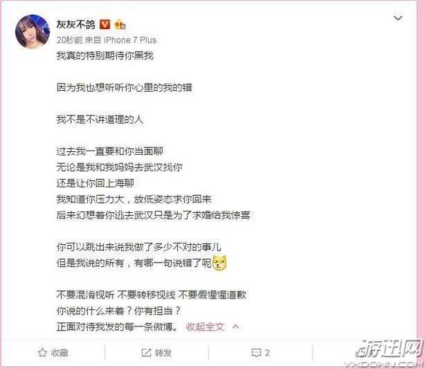你说你抑郁,今晚回上海我们好好解决。你要是只是逃避,今晚继续你的直播。”