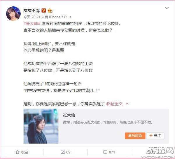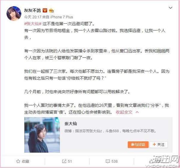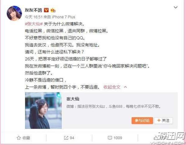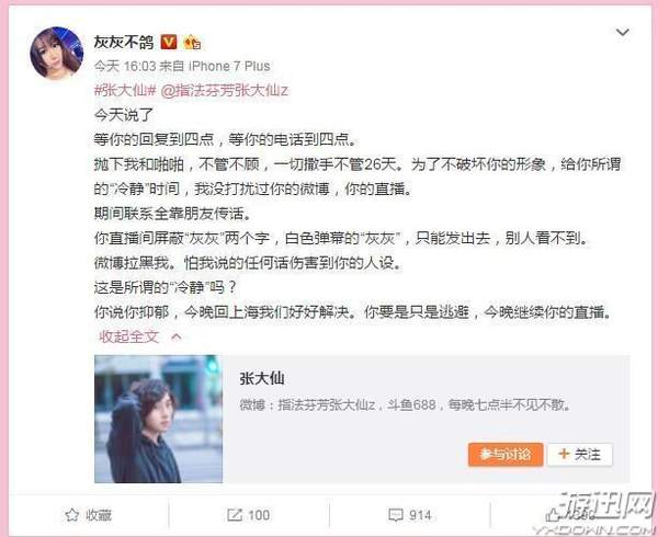 此后,灰灰又陆续发了大量微博,其中内容令人惊叹。但是截至11月10日晚11时,张大仙尚未有其他回应。