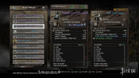 《仁王》有着复杂的装备系统,不同的颜色代表了装备的稀有程度