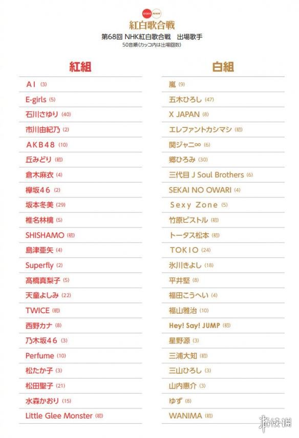 NHK终于公布了激动人心的第68届红白歌合战名单,之前日媒曝料的内定人选都上了。我们也可以看到众多熟悉的歌手、组合名字。