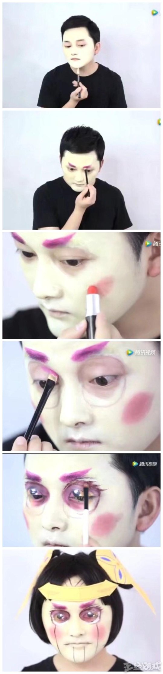 这位想模仿鲁班七号的男同志也是很拼啊,还给自己的脸化妆了,不过显然化妆技术不在线。这个样子真符合鲁班的台词:鲁班大师智障250,智障,真的智障。但是一个男生能画成这样已经很不错了。至少不像我们的黄教主那么敷衍,弄了2个包包头就说自己是鲁班了。
