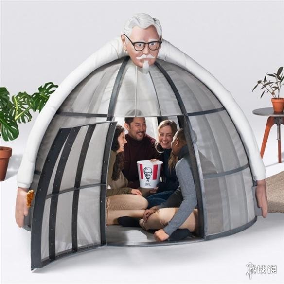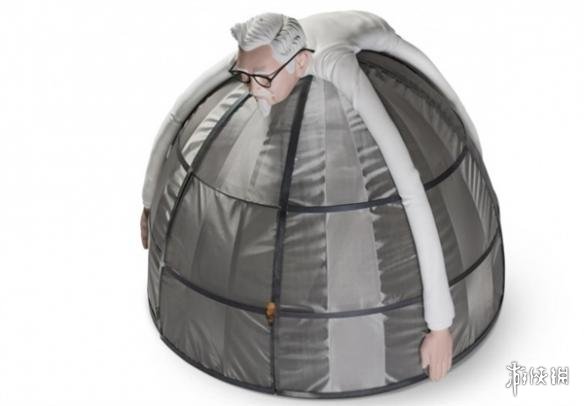 有趣的是,上面还有肯德基创始人山德士上校的模型,伸手护住整个帐篷。是不是很有安全感!