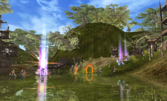 因为《神泣》的故事是两女神阵营的战斗,所以分光明和黑暗两个阵营,边境地带时常会出现战斗,当时参加过几次阵营战斗,刚刚开始打的时候还好,可以看准敌人在释放合适的技能,后来人越来越多就只能凭感觉战斗了,因为卡的实在没法操作了。不过满屏幕的人,大家前赴后继的战斗,看着实在很热血。